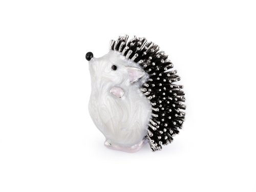 Brošňa ježka s farebným smaltom bude zaujímavou ozdobou vášho odevu. Je perfektne spracovaná s precíznym zameraním na detaily. Smalt má perleťový nádych, pichliače majú kovový lesk. Zo zadnej strany je brošňový špendlík. Brošne efektne pôsobia nielen na odevoch, ale sú vhodné aj na ozdobenie klobúkov, tašky či zopnutie šatky. Sú na plastovej karte, ktorú je možné zavesiť na predajné stojany. Brošňa č.2 nemá perleťový lesk.