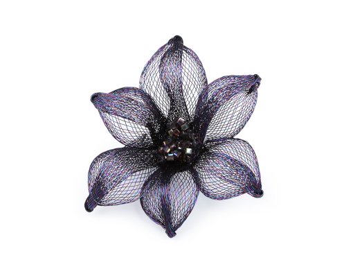 Vzdušná kovová brošňa kvetu je v strede ozdobená brúsenými korálkami. Okvetné listy sú z pevnej kovovej sieťky, perfektne držia tvar a majú nádherné kovové odlesky. Brošňa je veľmi elegantná, môžete ju využiť na spoločenské udalosti aj bežné nosenie. Skvele ozdobia odevy, kabelky, klobúky a čiapky. Na zadnej strane má brošňový špendlík. Brošňa je zabalená v transparentnej okrúhlej krabičke.