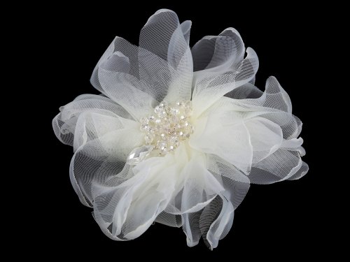 Romantická textilná brošňa kvetu z organzy má bohaté okvetné plátky, je jemne nadýchaná. V strede je ozdobená brúsenými korálkami, vďaka ktorým sa nádherne trblietajú. Vzadu má brošňový špendlík, kvetom si môžete ozdobiť šaty, blúzku, sako, klobúk aj kabelku.