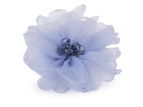 Romantická textilná brošňa kvetu z organzy má bohaté okvetné plátky, je jemne nadýchaná. V strede je ozdobená brúsenými korálkami, vďaka ktorým sa nádherne trblietajú. Vzadu má brošňový špendlík, kvetom si môžete ozdobiť šaty, blúzku, sako, klobúk aj kabelku.