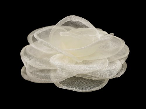 Brošňa kvetu z organzy je elegantná, vzdušná a nadýchaná vďaka bohatým okvetným plátkom. V spodnej časti má spínací špendlík a klips, takže ju môžete pripevniť ako na odev, tak do vlasov. Kvetom si môžete ozdobiť šaty, blúzku, sako, klobúk aj kabelku. Vo vlasoch bude pôsobiť romanticky.