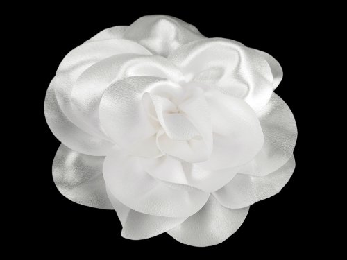 Saténová brošňa veľkého kvetu má bohatý 3D tvar. V spodnej časti má spínací špendlík a klips, takže ju môžete pripevniť ako na odev, tak do vlasov. Kvet využijete ako ozdobu na šaty, blúzku, sako alebo kabelku. Vo vlasoch bude pôsobiť romanticky.