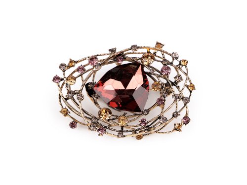 Elegantná brošňa s veľkým kameňom je výrazný módny doplnok, ktorý okamžite upúta pozornosť svojou žiarivosťou a luxusným vzhľadom. Jej kovový základ je vysadený ďalšími brúsenými kamienkami, ktoré vytvárajú jemné odlesky pri každom pohybe. Na zadnej strane má brošňový špendlík. Môžete ju nosiť na odevoch, čiapkach, klobúkoch, taškách či s ňou môžete zopnúť šatku. Brošňa je na karte, ktorú je možné zavesiť na predajné stojany.