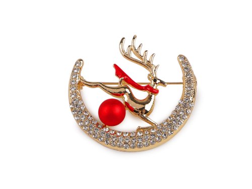 Elegantná brošňa s jeleňom a mesiacom bude perfektným doplnkom vášho odevu. Vďaka brúseným kamienkom, ktoré sa trblietajú, skvele dozdobia kabáty, saká, svetre, kabelky či čiapky. Hodí sa aj na ozdobné zopnutie šatky. Brošňa má vzadu brošňový špendlík. Je na plastovej karte, ktorá sa dá zavesiť na predajné stojany.