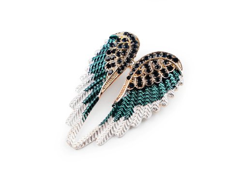 Brošňa krídiel s farebným smaltom je veľmi poetická. Je ozdobená brúsenými kamienkami s jemným leskom, môžete ju využiť na bežné nosenie aj na spoločenské udalosti - návštevy divadiel, oslavy a pod. Z rubu má brošňový špendlík. Môžete ju nosiť nielen na odevoch, hodí sa aj na ozdobenie klobúkov, tašky či zopnutie šatky. Brošňa je na plastovej karte, ktorú je možné zavesiť na predajné stojany.