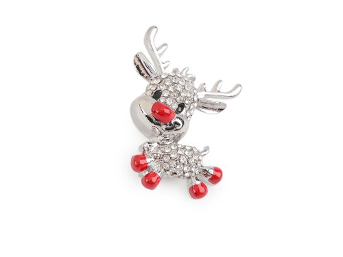Elegantná brošňa s roztomilým sobom bude hravým doplnkom vášho odevu. Vďaka bohatému zdobeniu brúsenými kamienkami sa efektne trblietajú, skvele dozdobia košele, saká, svetre, kabelky či čiapky. Hodí sa aj na ozdobné zopnutie šatky. Sob č. 3 a 4 je ozdobený imitáciou perlete. Brošňa má vzadu brošňový špendlík. Je na plastovej karte, ktorá sa dá zavesiť na predajné stojany.