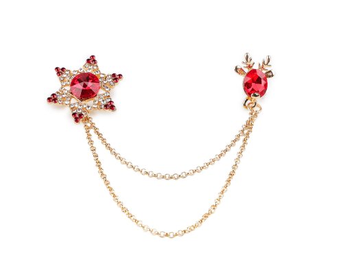 Brošňa / spona dragoun s vianočným dizajnom je elegantným doplnkom, ktorý zaujme na prvý pohľad svojim jemným a prepracovaným dizajnom. Je ozdobená brúsenými kameňmi, na jednej strane nájdete snehovú vločku, ktorá je prepojená očkovými retiazkami s jelenou hlavou na druhej strane. Dragoun zaujímavo oživí každý outfit. Môžete si ho pripnúť na sako, kabát, košeľu, blúzku aj tašku. Vločka má brošňový špendlík, jeleň má jednobodové zapínanie ako odznak. Dragoun je umiestnený na plastovej karte, ktorá sa dá zavesiť na predajné stojany.