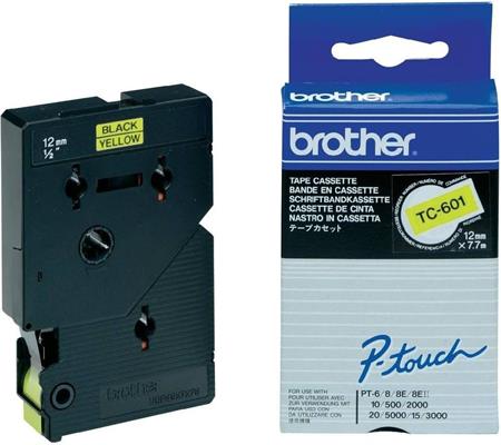 TC-601 TC páska šírka 12mm, žltá laminovaná páska, čierna potlač, dĺžka 7,7mBrother kazety pások boli vyvinuté tak, aby bezchybne fungovali s tlačiarňami štítkov Brother a umožňovali dosahovanie perfektnej …