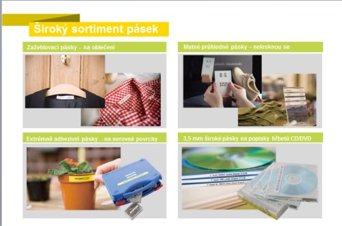 Využitie štítkov v kancelárii : označenie adresárov a kartoték, zložiek a šanónov, manuálov, varovania a informačnej tabule, označenie miestností, inventárov, menovky, čiarové kódy, telefónne čísla, poštové schránky, odbery a vzorky pre laboratóriá, evidencie a kartotéky, nádobky na liečivá a zdravotný materiál....