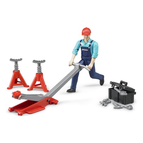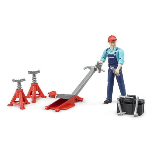 Každý stroj potrebuje z času na čas menšiu či väčšiu opravu a preto je tu mechanik s náradím. Figúrka mechanika má pohyblivé končatiny. Mechanikovi zo série BWORLD nesmie chýbať poriadne náradie-kladivo, skrutkovač, kľúče, hevery, atď. aby opravil každú závadu. Vyrobené v Nemecku, z kvalitných materiálov. Hlavné vlastnosti: pohyblivá figúrka mechanika s príslušenstvomvyrobené v Nemecku