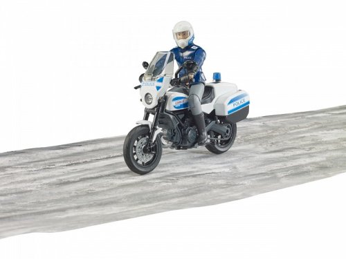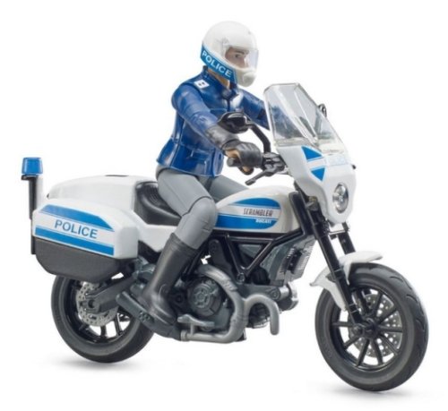 Aj v Bruder svete je potrebné dohliadať na dodržiavanie zákonov a to zaistí napr. sada Bruder 062731 Policajná motorka Ducati Scrambler s policajtom, ktorý dostihne každého zločinca. Špeciálne upravený policajný motocykel Ducati Scrambler je možné riadiť pomocou riadidiel a po zastavení je možné sklopiť stojan a udržať tak stabilitu stojacej mašiny. Na motorke Bruder 62731 bude strážca zákona rýchly ako vietor a neunikne mu žiadny lupič. Figúrka policajta má pohyblivé končatiny a je vybavená prilbou a rukavicami. Vyrobené v Nemecku, z kvalitných materiálov. Hlavné vlastnosti: motorka s policajtomfigúrka s pohyblivými končatinamiprilba, rukavicevyrobené v Nemecku