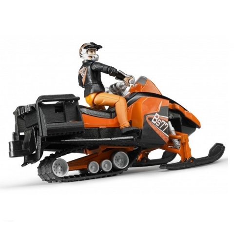 Oranžový snežný skúter s figúrkou má dvojité sedadlo pre 2 figúrky BWORLD, dva držiaky náradia, odnímateľné závesné zariadenie, odnímateľné držiaky batohov s uchytením krabíc s náradím. Skúter má gumové pásy a zatáčacie lyžiny. Figúrka vodiča má helmu a rukavice. Vyrobené v Nemecku, z kvalitných materiálov. Hlavné vlastnosti: snežný skúter s figúrkou zo série BWORLD mnoho funkcií vyrobených v Nemecku