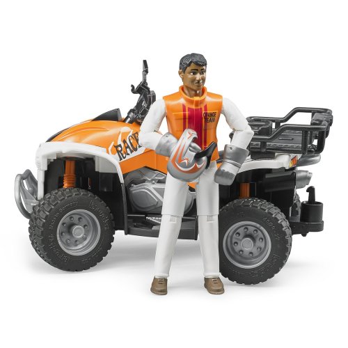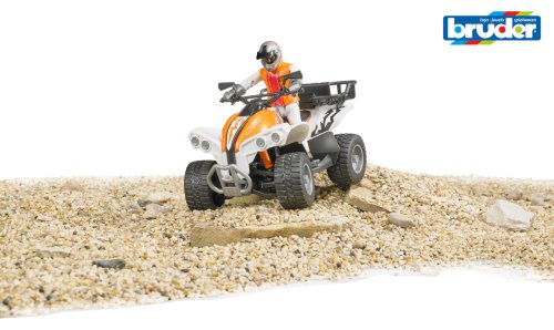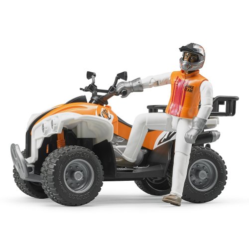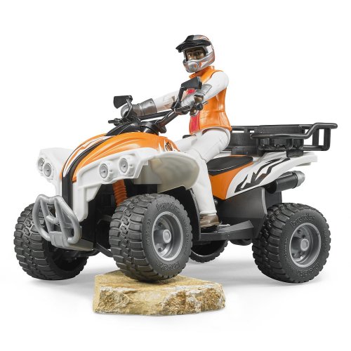Prírastkom do rodiny Bruder je pracovná štvorkolka s vodičom. Štvorkolka má pohyblivé kolesá, odnímateľnú časť batožinového priestoru, odpruženú prednú a zadnú nápravu. Súčasťou štvorkolky sú 2 držiaky na náradie. Vybavená je mäkkými gumovými pneumatikami s behúňom. Vodič štvorkolky má pohyblivé ruky, nohy a hlavu. Na sebe má jazdecké oblečenie vrátane helmy a jazdeckých topánok. Model je reálnou kópiou skutočnej štvorkolky. Nevhodné pre deti do 3 rokov. Vyrobené v Nemecku, z kvalitných materiálov.