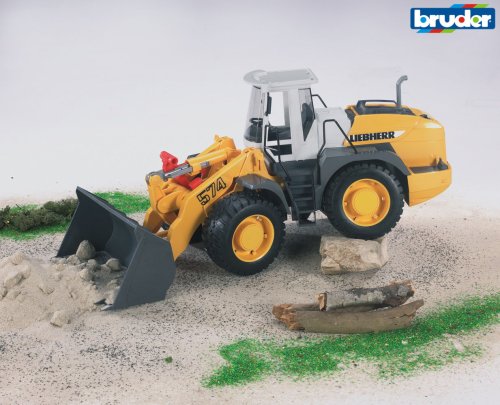 Bruder Čelný nakladač LIEBHERR L574 Čelný nakladač LIEBHERR L574 je veľmi kvalitne spracovaný model! Predná náprava sa spoločne s nakladačom otáčajú na obe strany, predným nakladačom sa pohybuje pomocou jednej z páčok, druhá páčka nakladač vysype, zadné kolesá majú nezávislé zavesenie, kapota je odklopiteľná, zasklená kabína s priehľadným hladkým plastom, profilované pneumatiky, veľmi kvalitný plast. Prekvapí vás funkčnosť tohto nakladača a podobnosť ako u skutočného ostroja! Čelný nakladač bol vyrobený v mierke 1:16 ku skutočnému čelnému nakladaču ako verná plastová kópia. Ide o veľmi kvalitné spracovanie nemeckej firmy BRUDER do najmenších detailov, vyrobené v Nemecku z vysoko kvalitného ABS plastu, pružného plastu s lesklým povrchom. Hlavné vlastnosti: detailne prepracovaný model s mnohými funkciamipredná náprava sa spoločne s nakladačom otáčajú na obe stranypredným nakladačom sa pohybuje pomocou jednej z páčok, druhá páčka nakladač vysypeootvárateľná kapotazasklená kabínaprofilované mäkké pneumatikyvyrobené v Nemecku