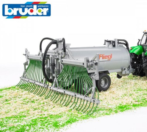 Model cisterny Fliegl je možné po odklopení horného veka naplniť vodou, ktorú pomocou vypúšťacieho vetilu je možné opäť ľahko vyprázdniť. Príves cisterna s postrekovačom Fliegl je nefunkčná napodobenina cisterny, pripojiteľná ku všetkým traktorom a strojom BRUDER série 20xx, 21xx a 30xx. Vyrobené v Nemecku, z kvalitných materiálov. Hlavné vlastnosti: otvárateľné vrchné vekomožné naplniť vodouvypúšťací ventilkompatibilný s traktormi a strojmi Bruder série 20xx, 21xx a 30xxvyrobené v Nemecku