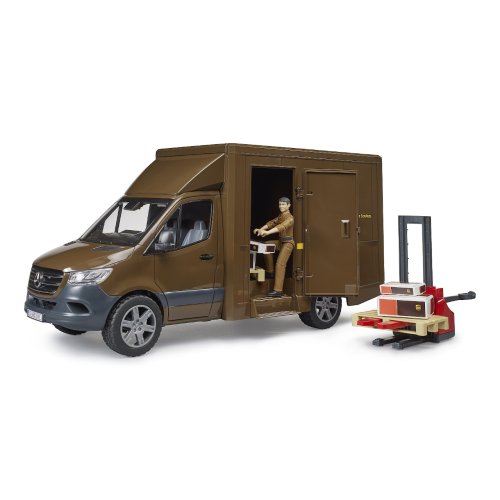 O kvalitách a všestrannosti vozidla Mercedes-Benz Sprinter vypovedá fakt, že ich na prácu využíva jeden z popredných svetových prepravcov, spoločnosť UPS. Prepracovaný model najnovšej generácie tohto úžitkového vozidla je preto ponúkaný aj v tejto úprave, vrátane atraktívneho príslušenstva a figúrky vodiča. Interiér skriňovej nadstavby vozidla je prístupný zadnými aj postrannými dvierkami vybavenými výklopným schodíkom. Nákladový priestor je možné zaplniť rozmanitými debničkami na paletách, a to pomocou detailne spracovaného, riaditeľného paletového vozíka opatreného nastaviteľnými vidlicami. Vozidlo je štandardne vybavené odnímateľnou konzolou pre navijak. Jeho kabína je otvárateľnými dvierkami pohodlne prístupná a samozrejme pripravená na usadenie dodávanej aj inej figúrky zo širokej ponuky BRUDER BWORLD. V našej ponuke nájdete mnohé ďalšie príhodné rozšírenia a príslušenstvo charakterom zodpovedajúce modelu. Vyrobené v Nemecku, z kvalitných materiálov. Hlavné vlastnosti: 2 palety, 4 krabice, riaditeľný paletový vozík a pohyblivá figúrka vodičootvárateľné zadné i postranné dvierka nákladového priestoru, výklopný schodiskokotviarateľné dvierka kabíny vodičeodnímateľná konzola navijakukompatibilita s BWORLD príslušenstvomvyrobené v Nemecku