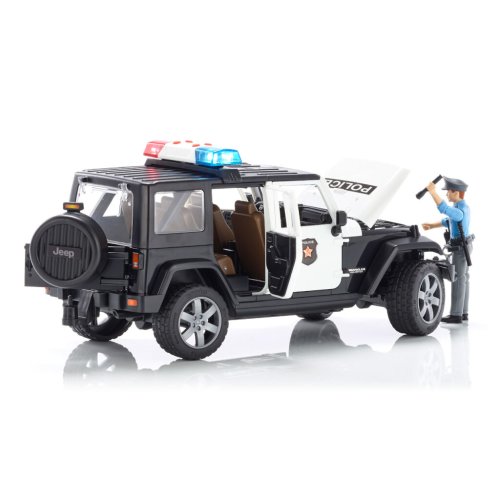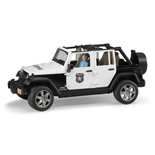 Bruder Jeep Wrangler Rubicon Polícia s figúrkou je novinkou roku 2015. Bruder Jeep Wrangler Rubicon je vernou kópiou skutočného Jeepu s veľmi detailne prepracovaným modelom motora az časti zasklenou kabínou vodiča. Jeep má odnímateľnú dvojdielnu strechu, odnímateľné zadné sedadlá a odpruženú prednú aj zadnú nápravu. Je možné ho riadiť pomocou prídavného volantu s dlhším ramenom, ktorý sa zasunie do existujúceho volantu a tým sa veľmi uľahčuje ovládanie vozidla. Má otvárateľné všetky bočné aj zadné dvere aj kapotu - je možné nahliadnuť na blok motora. Súčasťou vozidla je figúrka policajta v uniforme, ktorému nechýba opasok s obuškom, pištoľ, baterka, putá a vysielačka. Jeep Wrangler Rubicon disponuje univerzálnym funkčným majákom so 4 zvukmi - zvuk motora, policajnej sirény, sirény hasičov a tónom výstrahy. Kompatibilný s figúrkami Bworld. Vyrobené v Nemecku, z kvalitných materiálov. Hlavné vlastnosti: otvárateľné dvere aj zadné okno a vysielačkuuniverzálny maják so zvukom je možné jednoducho pripojiť k autám Bruder a stlačením tlačidla zvoľte zodpovedajúci tón sirény (1. zvuk motora, 2. policajná siréna, 3. siréna hasičov, 4. tón výstrahy) vyrobené v Nemecku