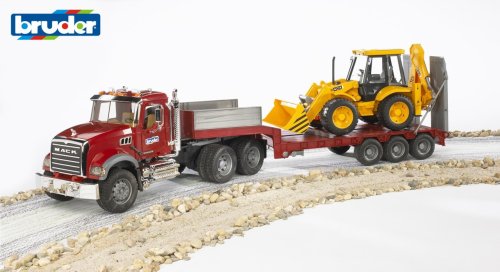 Bruder MACK ťahač s nakladačom JCB 4CX je nádherným modelom amerického vozidla. Mohutná súprava ťahača MACK a návesu so známym nakladačom BRUDER JCB. Ťahač disponuje výklopným motorovým priestorom a otváraním dverí. Celá súprava je osadená mäkkými pneumatikami. Vyrobené v Nemecku, z kvalitných materiálov. Hlavné vlastnosti: ťahač s nakladačomvýklopný motorový priestor a otváranie dverívyrobené v Nemecku