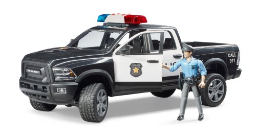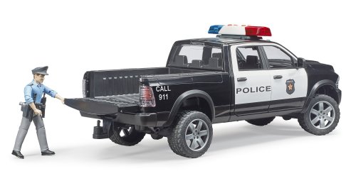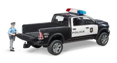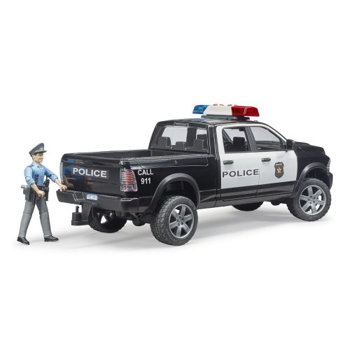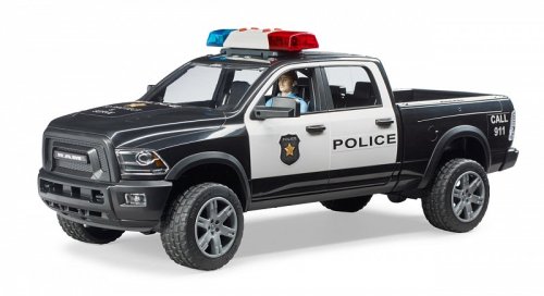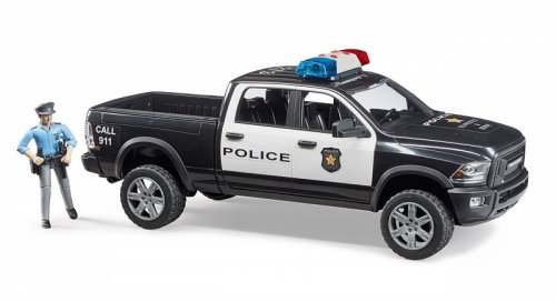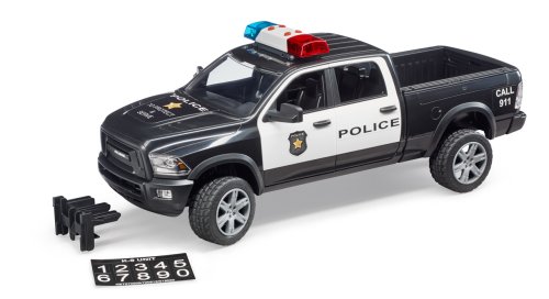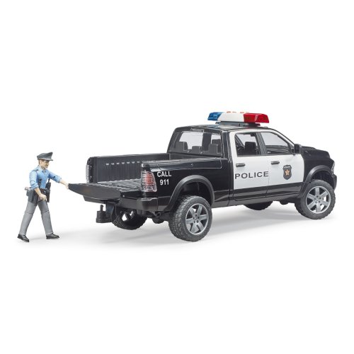 Bezpečnosť Bruder sveta zaisťujú policajti na koňoch, v autách alebo psovodi. Teraz je k dispozícii posila v podobe policajného terénneho auta RAM s policajtom. Policajný Pick-up s pohonom 4 x 4 sa hodí do každého terénu, vrátane menej prístupných lesov alebo horských oblastí. Terénne auto vo farbách polície má svetelný a zvukový maják, otváracie dvere a zadné čelo, nechýba ani zadné ťažné zariadenie a riaditeľná predná náprava. Policajné auto RAM Bruder je možné riadiť predĺženým volantom, ktorý je súčasťou balenia. Miesto za volantom je prispôsobené figúrkam Bruder BWORLD. Figúrka policajta s policajnou čiapkou má pohyblivé končatiny, je vybavený opaskom s nevyhnutnosťami ako je obušok, pištoľ, putá a nechýba ani vysielačka. Balenie modelu Bruder obsahuje: Policajné terénne auto RAM s majákom a figúrku policajta s príslušenstvom . Hlavné vlastnosti: svetelný a zvukový majákootváracie dvere a zadné čelozadné ťažné zariadenie a riaditeľná predná náprava