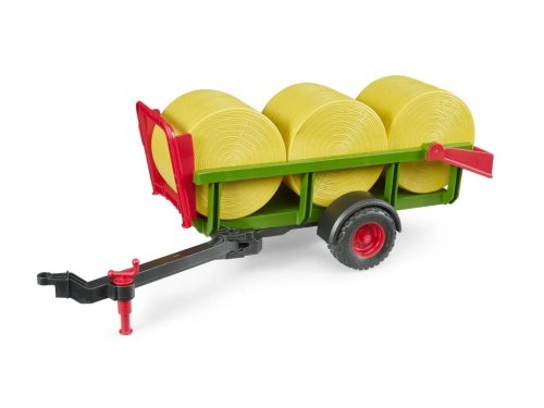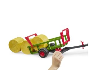 Prepravník, ktorý môže prevážať 3 balíky slamy. Balíky sú súčasťou balenia. V modernom poľnohospodárstve rozhoduje v teréne hlavne rýchlosť a efektivita! Presne to si deti vyskúšajú so zberačom okrúhlych balíkov BRUDER. Príves je možné jednoducho pripojiť za traktory BRUDER radu 1000 až 3000, prípadne priamo za lis na okrúhle balíky pomocou typického ťažného zariadenia BRUDER. Chytrým prvkom je bočný posun ťažnej tyče, vďaka nemu je možné okrúhly balík naviesť priamo na zberný mechanizmus, odkiaľ sa jednoducho zdvihne a u. Ako náhle je čas vyložiť, stačí otvoriť zámky a sklopiť ložnú plochu a balíky sú behom chvíľky späť na zemi a práca môže pokračovať ... Hlavné vlastnosti: pohyblivé ťažné zariadenie