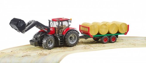 Traktor Case Optum 300 s množstvom funkčných prvkov sa bude vášmu malému traktoristovi určite páčiť. Pri traktore Case môžete otvoriť kryt motora a nechýbajú ani otváracie dvere s priestrannou kabínou pre figúrky Bruder. Traktor Case Bruder 3198 má riaditeľnú prednú nápravu pomocou predĺženého volantu, odnímateľné predné závažie, výškovo nastaviteľné závesné zariadenie a mäkké profilované pneumatiky. Čelný nakladač s funkčnými prvkami využije každý malý poľnohospodár napríklad na prepravu kŕmenia alebo balíkov. Súčasťou balenia modelu Bruder 3198 je aj prepravník na balíky s 8 balíkmi. Odvezte balíky slamy zo svojho poľa pohodlne a uložte ich v stodole. Zaobstarajte si k modelu Bruder 3198 Case IH Optum 300 CVX ďalšie príslušenstvo Bruder a užite si ešte viac zábavy. Vyrobené v Nemecku, z kvalitných materiálov. Hlavné vlastnosti: veľa funkčných prvkovotvárateľné dvere aj kryt motoravýškovo nastaviteľné závesné zariadenie prepravník s 8 balíkmivyrobené v Nemecku