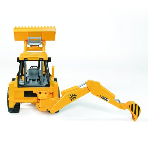 Bruder Traktor JCB čelný nakladač + bager Nakladač JCB 4CX je obojstranný nakladač, vybavený čelnou lyžicou aj zadným bagrom. Traktor má plne funkčný predný nakladač. Sedadlo vodiča je otočné o 360 ° a volant pohyblivý. Na bezpečnejšie upevnenie pozície slúžia výsuvné oporné nohy. Zadný nakladač sa pohybuje vertikálne aj horizontálne pomocou kĺbu ako pri skutočenom stroji. Nechýbajú ani mäkké profilované pneumatiky. Vyrobené v Nemecku, z kvalitných materiálov.