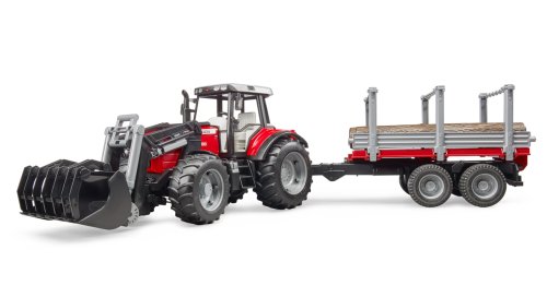 Každého milovníka traktorov značky Massey Ferguson potešíte týmto modelom Bruder 02046. Skladá sa z Traktora Massey Ferguson 7480 s čelným nakladačom (Bruder 2042) a prepravníka na drevo (Bruder 2213). Bruder 2046 je správny pomocník na prepravu dreva a pri ďalších prácach. Už viete, na akú prácu ho budete využívať vy? Massey Ferguson 7480 je červený krásavec, ktorý nesmie vo vašej Bruder zbierke chýbať. Rovnako ako iné traktory Bruder má aj tento, otvárací kryt motora, výškovo posuvné ťažné zariadenie, mäkké profilované pneumatiky, riaditeľnú prednú nápravu a samozrejme funkčný čelný nakladač. Prepravník na drevo so 4 kladami využije každý malý lesník ale nielen ten. Prepravník má otváracie bočnice, sklápaciu korbu a je možné ho pripojiť k akémukoľvek traktoru Bruder. Zaobstarajte si k traktoru Massey Ferguson 7480 ďalšie príslušenstvo a doplnky napr. figúrku drevorubača Bruder 60030 a užite si ešte viac zábavy. Vyrobené v Nemecku, z kvalitných materiálov. Hlavné vlastnosti: traktor s čelným nakladačom a prepravníkom na drevootvárací kryt motoravýškovo nastaviteľné ťažné zariadeniemäkké profilované pneumatikyriaditeľná predná nápravaotváracia bočnica a sklápacia korba prepravníkavyrobené v Nemecku