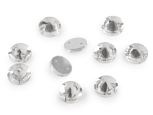 Sklenené kamienky majú precízny výbrus, vďaka ktorému sa efektne trblietajú. V každom kamienku sú dva otvory, ktoré umožňujú ľahké našívanie. [Na rubovej strane sú opatrené krycou farbou, ktorá zabraňuje sfarbeniu podľa priloženého podkladu.] Oceníte ich pri výrobe šitých šperkov alebo zdobení odevov. Kamienky oslnivo vyniknú na spoločenských šatách, blúzkach a doplnkoch, ako sú kabelky, listové kabelky, klobúky a pod.