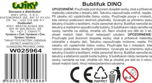 Bublifuk dino. Veľkosť 12 cm. 4 varianty - modrá, zelená, žltá, ružová.