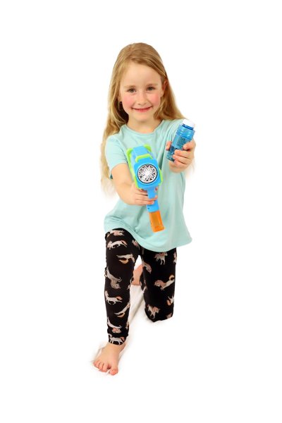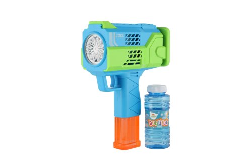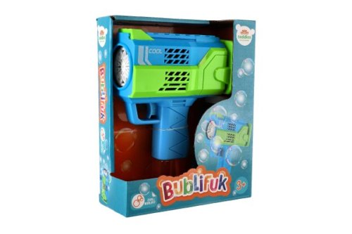 Nebaví Vaše deti fúkať bubliny po jednej? V tom prípade je táto pištoľ priamo pre vás. Odistite, nalejte náplň do nádoby, stlačte spúšť a užívajte si dúhový raj bublín. Nekonečná zábava pre deti i dospelých, bublifuk bude báječná sranda nielen na teplé letné dni. Bubliny sú ako kúzelné balóniky, ktoré si dieťa môže vykúzliť a obdivovať ich dúhovú farbu. Bublifuk pištole s náplňou. Rozmery balenia 18 x 23 x 8 cm. Vhodné pre deti od 3 rokov.