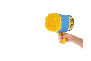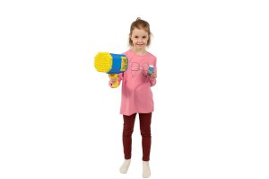 Deti určite okamžite prepadnú zábave vo svete s miliónmi bubliniek! Stačí namočiť zbraň do misky a môžete začať tvoriť nekonečno malých dúhových bublín! Zbraň má mnoho otvorov, ktoré vyfúknu stovky krásnych bublín po každom namočení. Nekonečná zábava pre deti i dospelých, bublifuk bude báječná sranda nielen na teplé letné dni. Mimoriadne ľahké ovládanie. Dobíjací pack je súčasťou balenia. Veľkosť pištole: 22 cm Rozmer balenia: 23 x 25 x 14 cm Vhodné pre deti od 4 rokov