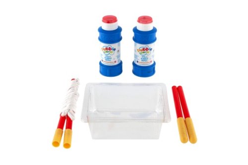 Súprava na vytváranie veľkých profesionálnych bublín. Balenie obsahuje 350 ml tekutiny a plastovú rukoväť s otvormi zo šnúry. Šnúra vytvára tri slučky, čo robí hru s bublinami ešte zábavnejšou. Rozmer krabice: 15 x 27 x 6 cm Vhodné od 3 rokov