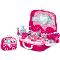 Salón krásy v kufríku 14 kusov príslušenstva, ktoré sa dá upratať do kufíka Rozmer: 10 x 21 x 27 cm Praktické uško na prenášanie Vyrobené z kvalitného a odolného plastu Pre deti od 3 rokov
