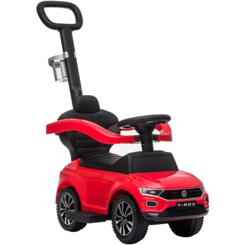 Odrážadlo Volkswagen T-ROC 3v1 Official licensed product Úložný priestor pod sedadlom Zvuky a melódie na volante, držiak na pitie Veľkosť 84 x 40 x 87 cm, sedátko je vo výške 26 cm Nosnosť 25 kg Vhodné pre deti od 2 rokov