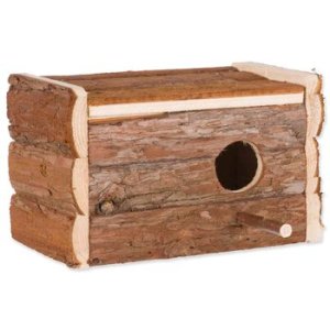 Drevená búdka s kôrou pre drobné vtáctvo na kladenie vajec.