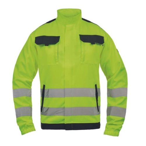 Unisex HI-VIS pracovná bunda so zapínaním na zips krytým légou 2 bočné vrecká, 2 náprsné vrecká s chlopňou na suchý zips 2 šité 5 cm široké reflexné pruhy cez boky a spodné rukávy Zosilnenie namáhaných častí …