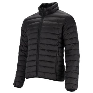 prešívaná polyamidová bunda syntetické perie tepelná izolácia elastický pás a manžety rukávov stojatý golier klapka na bradu obojstranný predný zips YKK 2 vrecká YKK v páse k dispozícii v dvoch farbách: tmavo …
