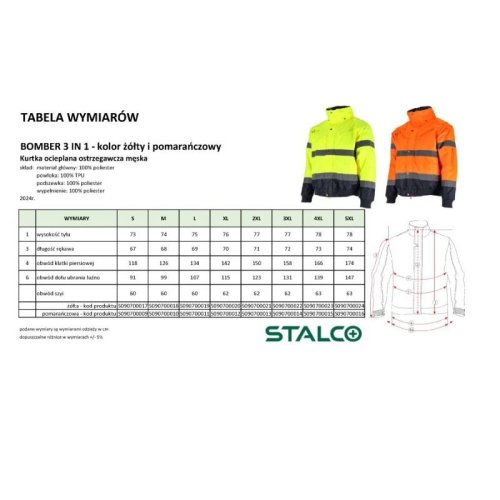 Bunda zateplená, výstražná BOMBER, 3 v1, 5XL, oranžová, STALCO