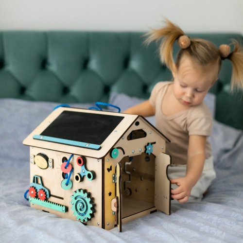 Vitajte vo svete vzdelávacích hračiek pre batoľatá! Dovoľte nám, aby sme Vám predstavili hraciu dosku v podobe Maisonnette Mini. Táto jedinečná drevená hračka bola vyvinutá podľa metódy Montessori. Je navrhnutá tak, aby Vaše dieťa na dlhý čas zaujala a Vám ponúkla trochu odpočinku. Vaše dieťa sa učí a rozvíja prostredné hty. Domček kombinuje rôzne prvky špeciálne navrhnuté tak, aby zlepšovali motorické zručnosti, koordináciu ruka-oko a logické myslenie Vášho dieťaťa. Vďaka svojim kompaktným rozmerom sa skvele hodí do malých priestorov. Každý prvok dosky s aktivitami slúži svojmu účelu. Zámky na posilnenie jemnej motoriky, zipsy na precvičovanie upevňovania a rozvoja zmyslov, triediace aktivity na podporu logického myslenia a riešenie problémov a mnoho ďalšieho. Triediace prvky sú k doske bezpečne pripevnené pomocou šnúrok, aby sa nestratili. Vnútri domčeka sa nachádza tlačidlová baterka, ktorá sa iste zapáči každému batoľaťu. Vďaka tejto baterke môžete dosku s aktivitami používať aj ako nočné svetlo. Stavte na jedinečnú metódu Montessori a nechajte svoje dieťa objavovať a rozvíjať sa prostredníctvom hry. S nástenkami aktivít dávate svojmu dieťaťu možnosť učiť sa a rozvíjať a zároveň sa baviť. Domček je vyrobený z kvalitnej brezovej preglejky a lakovaný vodou riediteľnými farbami, je bezpečný a odolný. Farebné odchýlky, hrče či drobné opravy v dreve sú prirodzené a dodávajú výrobku jedinečný charakter. Osobitnú pozornosť venujeme detailom a kvalite každého výrobku, aby mohol vašej rodine dlho slúžiť a bol predávaný budúcim batoľatám vo výbornom stave. Farba produktu sa môže mierne líšiť od fotografie v závislosti od nastavenia vášho zariadenia. Hlavné vlastnosti: bezpečný a odolnýkompaktné rozmeryinšpirácie Montessori pedagogikouobsahuje interaktívne motorické prvkyrozvíja jemnú motoriku, kreativitu a logické myslenievyrobené z kvalitnej brezovej preglejky, bezpečné laky na vodnej bázevyrobené v Českej republike