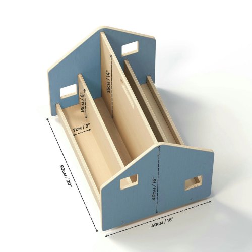 Obojstranná knižnica na kolieskach je praktické a bezpečné riešenie do detskej izby. Knihy sú v nej uložené tak, aby deti videli ich obálky a mohli si samostatne vybrať to, čo ich zaujme. Podporuje tak nezávislosť aj prirodzenú lásku na čítanie. Vďaka kolieskam sa dá knižnica ľahko presunúť tam, kde je práve potreba. Jej dizajn je ekologický, bezpečný a maximálne priateľský k deťom. Knižnica je vyrobená z kvalitnej lakovanej brezovej preglejky a jej stabilná konštrukcia s hladko zaoblenými hranami zaisťuje maximálnu bezpečnosť. Farba produktu sa môže mierne líšiť od fotografie v závislosti od nastavenia vášho zariadenia. Balenie obsahuje knižnicu na kolieskach. Knihy a hračky nie sú súčasťou balenia. Hlavné vlastnosti: stabilná a bezpečná konštrukciaobojstranný prístupmobilita vďaka kolieskamvyrobené z kvalitnej brezovej preglejky, bezpečné laky na vodnej bázevyrobené v Českej republike