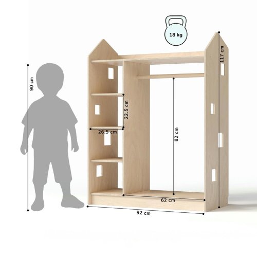 Objavte novinku BusyKids pre jednoduchú a hravú organizáciu detskej izby – detskú skriňu v tvare domčeka. Skvele doplnia obľúbené úložné police na hračky a knihy z rovnakej kolekcie a vnesie do priestoru útulnú a hravú atmosféru. Skriňa je navrhnutá podľa princípov Montessori. Vďaka otvorenému prístupu k policiam si deti ľahko samy vyberajú oblečenie, udržujú poriadok a postupne rozvíjajú samostatnosť a zodpovednosť. Voľbou skrine BusyKids podporujete nielen poriadok v izbe, ale aj kreatívny rozvoj a samostatnosť svojho dieťaťa . Skriňa je vyrobená z kvalitnej brezovej preglejky a farebné odchýlky, uzly či drobné opravy v dreve sú prirodzené a dodávajú výrobku jedinečný charakter. Farba produktu sa môže mierne líšiť od fotografie v závislosti od nastavenia vášho zariadenia. Každý kus je originál. Hlavné vlastnosti: hravý dizajn v tvare domčekaMontessori prístup – podporuje samostatnosť a poriadok podporuje rozvoj kreativity a zodpovednostikompatibilný s ostatnými BusyKids úložnými produktmi vyrobené z kvalitnej brezovej preglejky, bezpečné laky na vodnej bázevyrobené v Českej republike