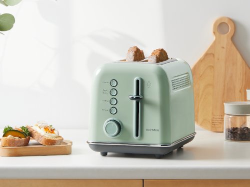 Stačí jedno otočenie a jedno stlačenie, ušetrí vám čas a námahu. Tlačidlá s LED indikátormi zaistia prehľad o funkčnom režime. Naštartujte svoj deň s dokonalým toastom od spoločnosti BUYDEEM. Retro kovový hriankovač na 2 plátky chleba je vybavený extra širokými otvormi na opekanie rôznych bagelov a muffinov. Stačí si vychutnať teplý chlieb, bagel alebo ho použiť na prípravu lahodného sendviča.