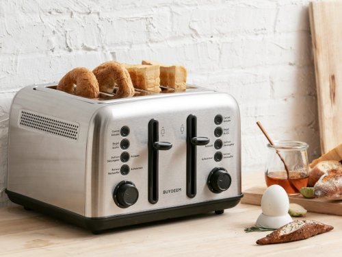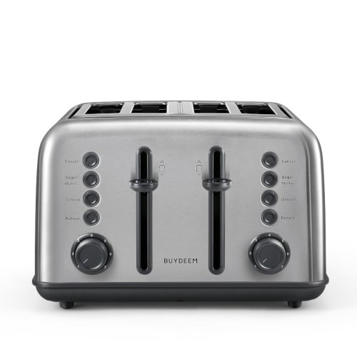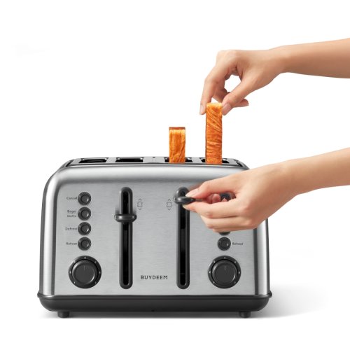 Stačí jedno otočenie a jedno stlačenie, ušetrí vám čas a námahu. Tlačidlá s LED indikátormi zaistia prehľad o funkčnom režime. Naštartujte svoj deň s dokonalým toastom od spoločnosti BUYDEEM. Retro kovový hriankovač na 4 plátky chleba je vybavený extra širokými otvormi na opekanie rôznych bagelov a muffinov. Stačí si vychutnať teplý chlieb, bagel alebo ho použiť na prípravu lahodného sendviča.