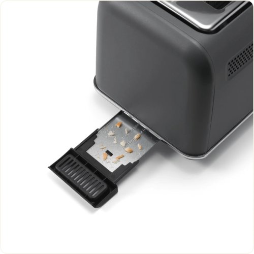 Rýchle varenie so zdvíhacou spínacou pákou pre ľahký prístup, s vyberateľnou miskou na omrvinky pre ľahké čistenie a skrytím proti prachu, s úložným priestorom pre kábel v spodnej časti.