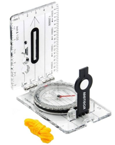 Skladací kompas Meteor 71008 s malou lupou navrhnutý na určovanie zemepisných smerov. Pomocou tohto kompasu môžete ľahko vypočítať vzdialenosti na mapách podľa merítka, otočný číselník je ponorený do nemrznúcej kvapaliny. Celkové rozmery sú 80/160 x 60 mm, priemer kompasu je 50 mm a súčasťou balenia je aj šnúrka pre nosenie na krku.