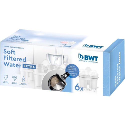 6 ks náhradných filtrov Vhodné pre všetky štandardné filtračné systémy s oválnym tvarom, napr. BWT, LAICA Biflux, DAFI Unimax atď. BWT filtre určené predovšetkým pre extra tvrdú vodu Je šikovným riešením na ochranu spotrebičov, či zdravý životný štýl Filtráciou pomocou BWT filtrov ochránite svoje spotrebiče úplne jednoducho