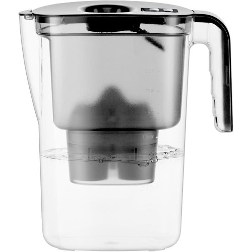 Elegantná čierna filtračná kanvica O objeme 2,6 litra s mechanickým ukazovateľom výmeny filtra Balenie obsahuje jeden filter, ktorý obohacuje vodu o ióny zdraviu prospešný horčík