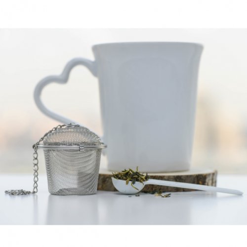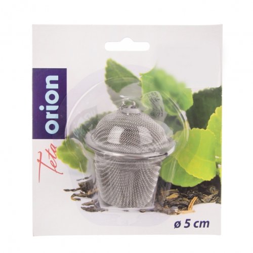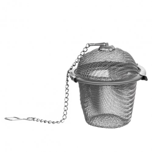 Čajítko na sypané čaje a bylinkové zmesi so závesom pre ľahké uchytenie k okraju hrnčeka. Materiál nerez. Priemer 5 cm, výška 4 cm. EAN 8592381150174