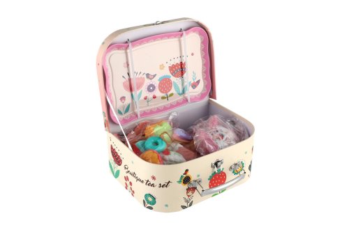 Každé malé dievčatko potrebuje mať vo svojej detskej kuchynke riad, aby mohlo variť čaj aj kávu pre svoje kamarátky a plyšáky. Sada obsahuje šálky s podšálkami, lyžičky, kanvičku na kávu alebo čaj s viečkom, tácku, podnos na zákusky, zákusty a ďalšie doplnky. Všetko je uložené v kufríku. Rozmer kufríka: 25 x 18 x 10,5 cm Vhodné od 3 rokov