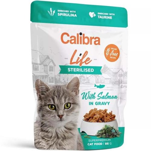 Receptúra s lososom – mäsové kapsičky pre dospelé kastrované a sterilizované mačky obsahuje vysoké množstvo mäsa 76% vo filetoch v omáčke. Zloženie tohto mäsového vrecka bez obilnín je jedine z kvalitných surovín. Tým je zaistená nielen skvelá stráviteľnosť, ale aj vysoká chutnosť. Kompletné superprémiové vlhké krmivo je určené na dlhodobé kŕmenie. Doplnené o múdra funkčná aditíva, a to vrátane nevyhnutného taurínu. Obohatené rakytníkom a ľanovým olejom s priaznivým vplyvom na organizmus mačky. Spirulina je bohatým zdrojom živín, vitamínov a minerálov, má silné antioxidačné účinky a podporuje obranyschopnosť orgamizmu. Taurín je pre mačky esenciálnou aminokyselinou, ktorú si mačky nevedia vytvoriť. Má celý rad účinkov, okrem iného zdravie zraku a srdca.